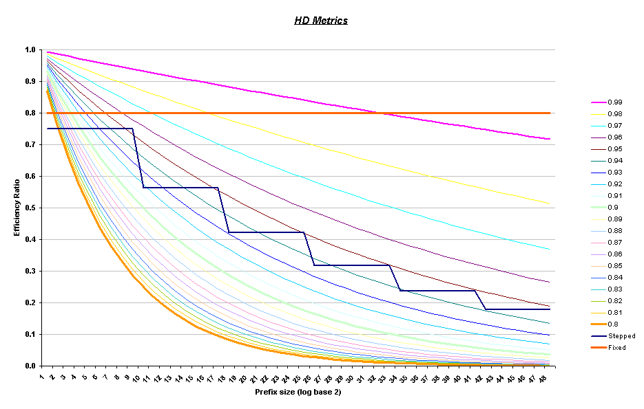 Prefix Size Stepped Stepped Efficiency HD-Ratio Efficiency Ratio