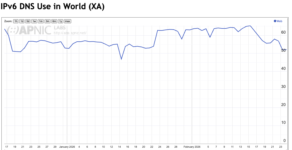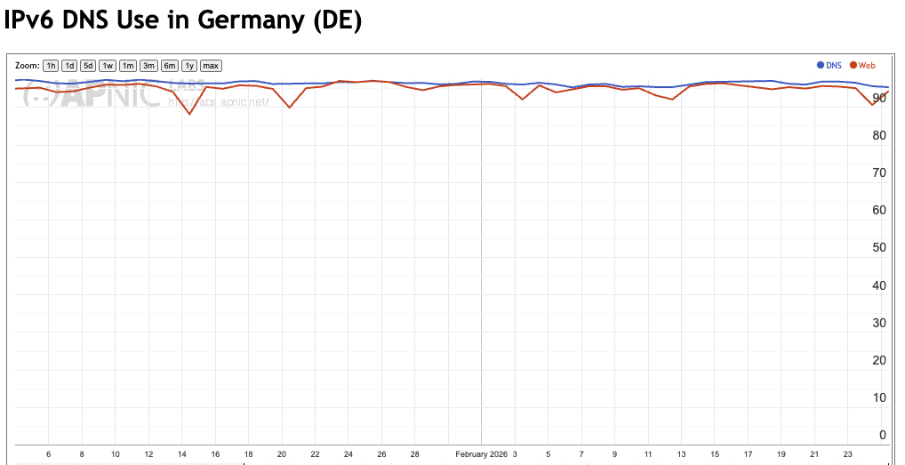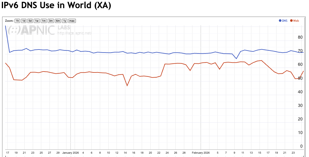 The overall result is that we see an overall capability of some 75% of users who are able to use DNS over IPv6.